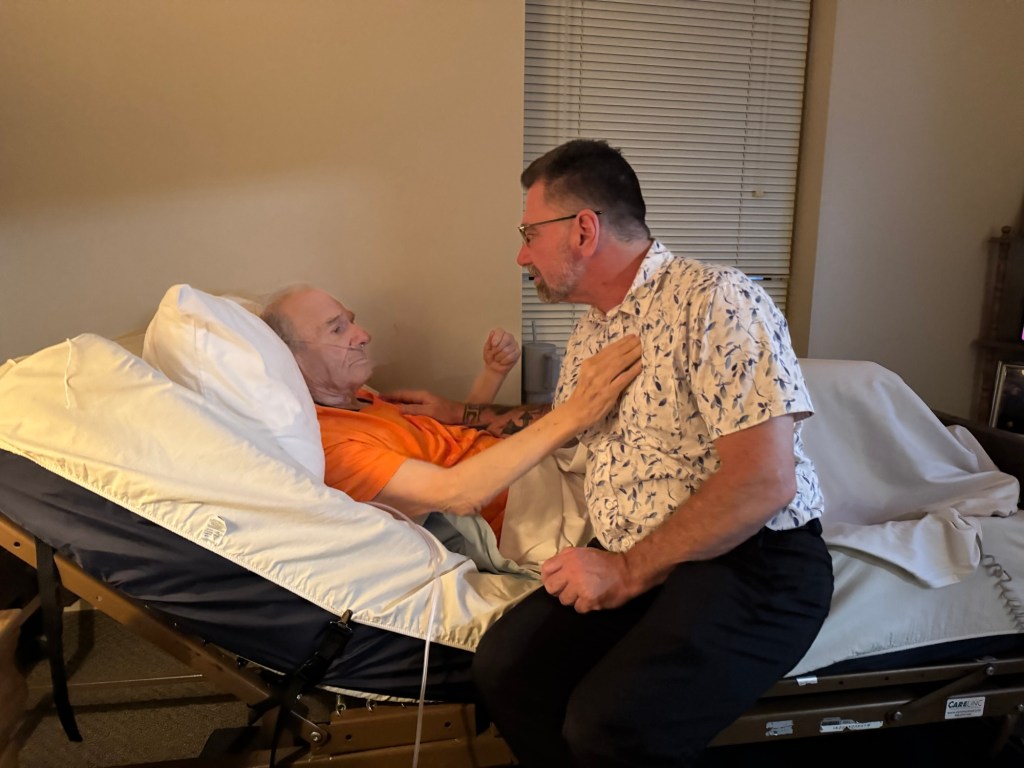 That night something happened between him and James that I will never forget. Dave looked at James in a way I had never seen before. There were no words, but everything that had never been spoken between them was there in that moment. James came and sat beside the bed and Dave grabbed onto him and held him there, locking eyes with his son in a way that carried more meaning than any sentence ever could. In that moment you could see the apologies, the pride, the love, the gratitude. It was his way of saying everything he had never said out loud. It was there closure to one another.